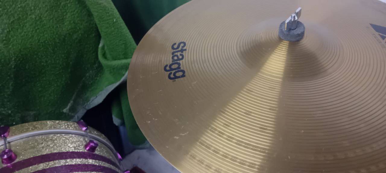 Snare, Bass-Drum, High-Hat, High-Tom, Floor-Tom, Ride-Becken und Splash-Becken.